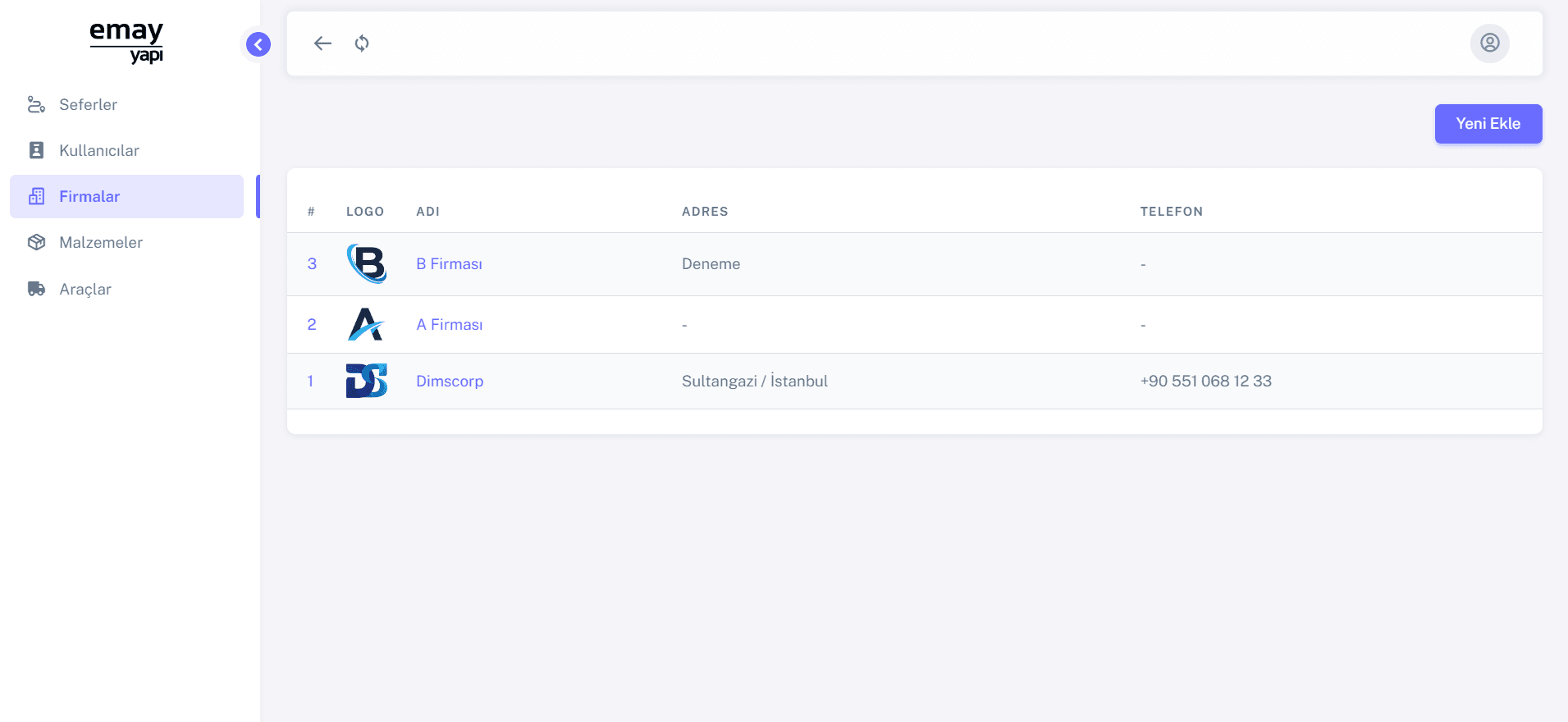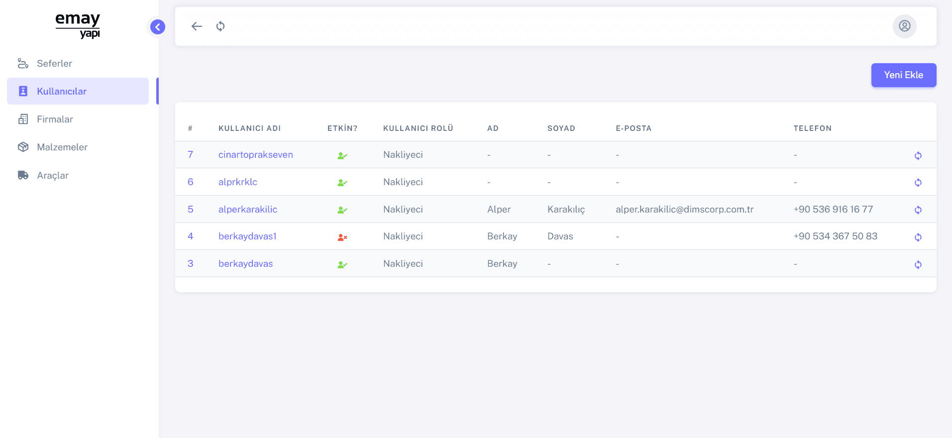 Emay Yapı Lojistik Araç Takip Uygulaması